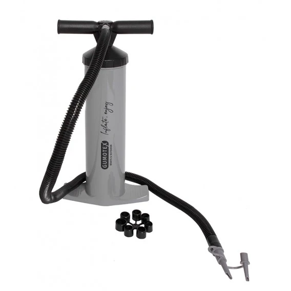 Die Gumotex Handpumpe 4/2 hat ein Volumen von 2/4 Litern und dient zum Aufpumpen aller Boote von Gumotex. Der Adapter für das Push-Push Ventil ist im Lieferumfang enthalten.